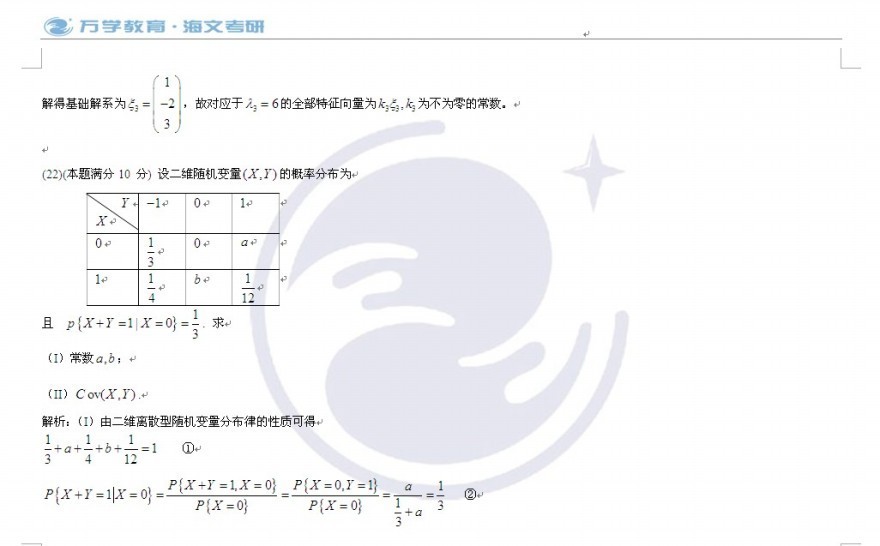 2010年全国硕士研究生入学考试数农真题答案