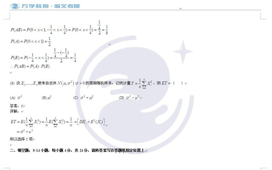 2010年全国硕士研究生入学考试数农真题答案