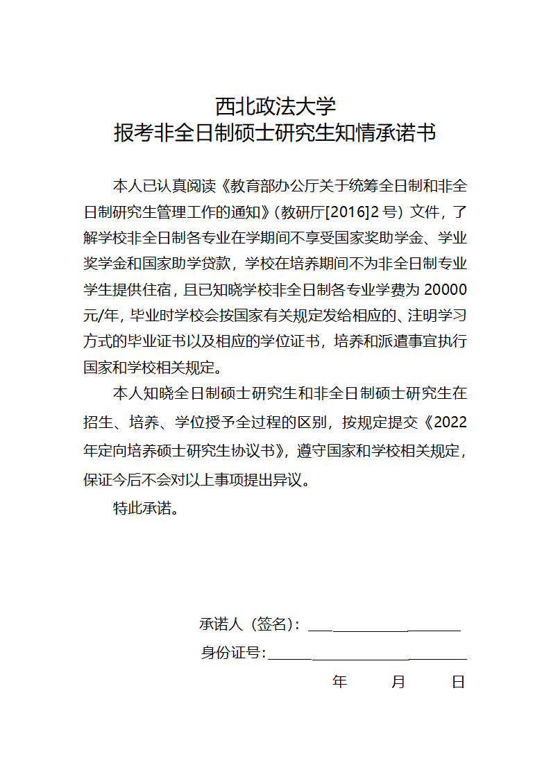 附件2:报考非全日制硕士研究生知情承诺书