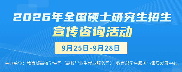 为帮助广大考生全面、准确了解研究生招生政策,“中国研究生招生信息网”将于2025年9月25日至28日开展“2026年全国硕士研究生招生宣传咨询活动”,届时所有研究生招生单位将在线解答考生咨询。